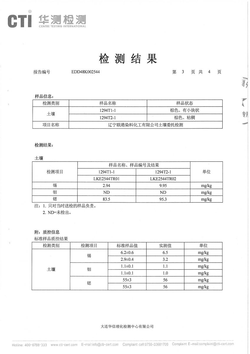 遼寧聯(lián)港染料化工有限公司土壤檢測結(jié)果
