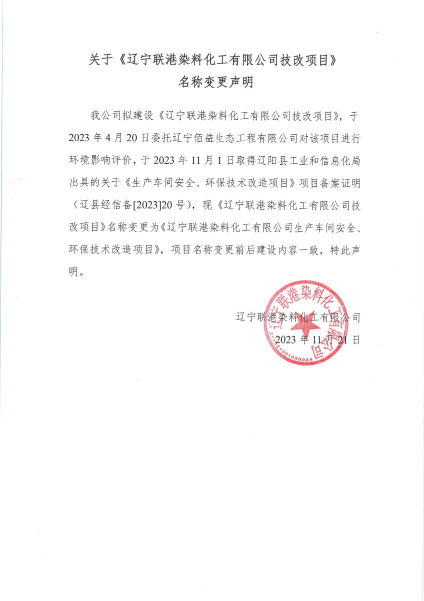 附件:關(guān)于《遼寧聯(lián)港染料化工有限公司技改項目》名稱變更聲明.pdf